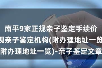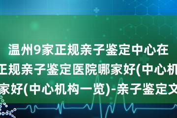 以下是几家襄阳地区知名亲子鉴定中心的详细信息:
